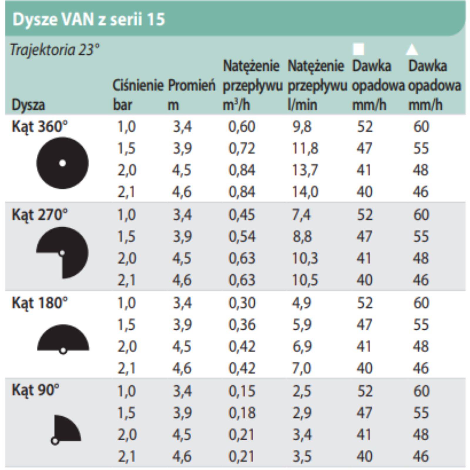 - planujesz sekcję opartą głównie na dyszach z rodziny VAN, bez mieszania ich z dyszami rotacyjnymi.