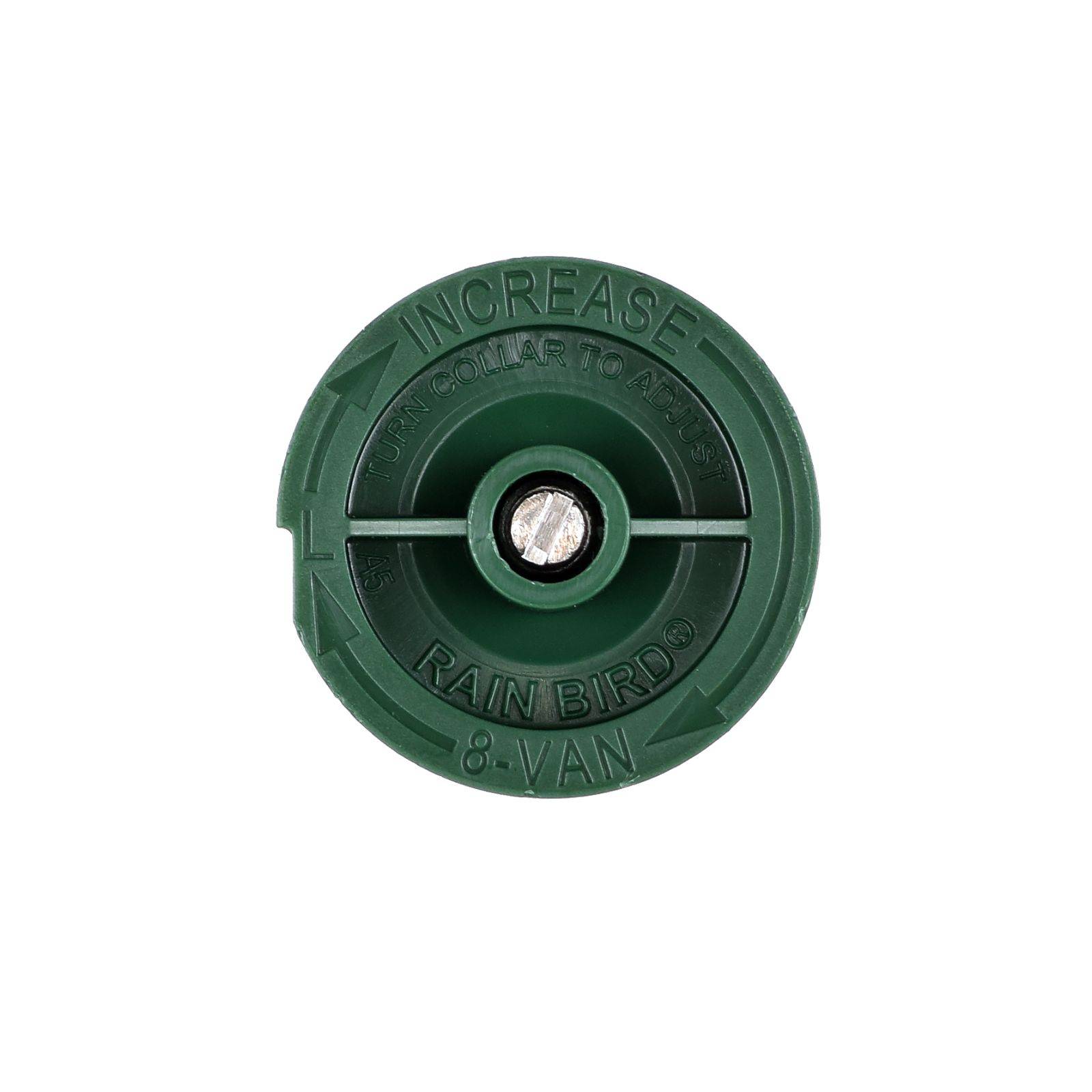 Dysza Rain Bird 8-VAN, 1,8–2,4 m (0–330°) to regulowana dysza zraszająca do korpusów statycznych Rain Bird 1800, w tym najpopularniejszego modelu 1804. Zapewnia zasięg od 6 do 8 stóp (ok. 1,8–2,4 m) oraz płynną regulację kąta pracy, dlatego dobrze sprawdza się na małych i średnich fragmentach trawnika wzdłuż chodników, podjazdów i rabat.