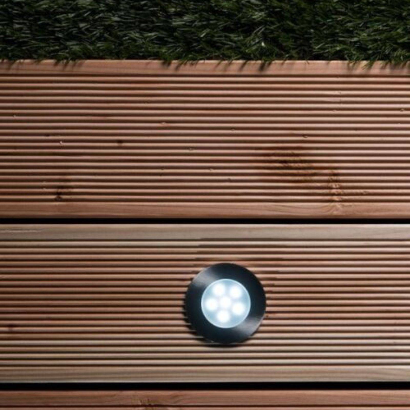 Lampa do zabudowy Birch to wodoszczelne oświetlenie LED o mocy 1W, idealne do średnich i dużych płytek lub kostki brukowej. Dzięki klasie szczelności IP68, jest odporna na wilgoć, a jej naturalne światło (5000K) zapewnia jasne i trwałe oświetlenie.