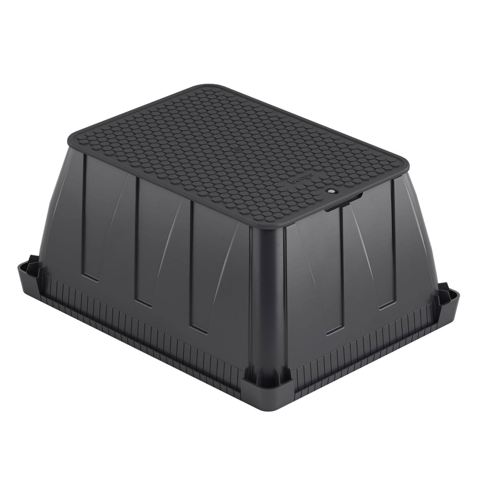 Skrzynka zaworowa prostokątna Jumbo BERGO BlackSkrzynka zaworowa prostokątna Jumbo BERGO Black to duża skrzynka do zakopania w ziemi, przeznaczona do elektrozaworów w automatycznych systemach nawadniania. Jumbo jest bez dna, dlatego łatwo poprowadzisz rury i przewody w gruncie, a jednocześnie uporządkujesz instalację i osłonisz ją przed zabrudzeniami.
