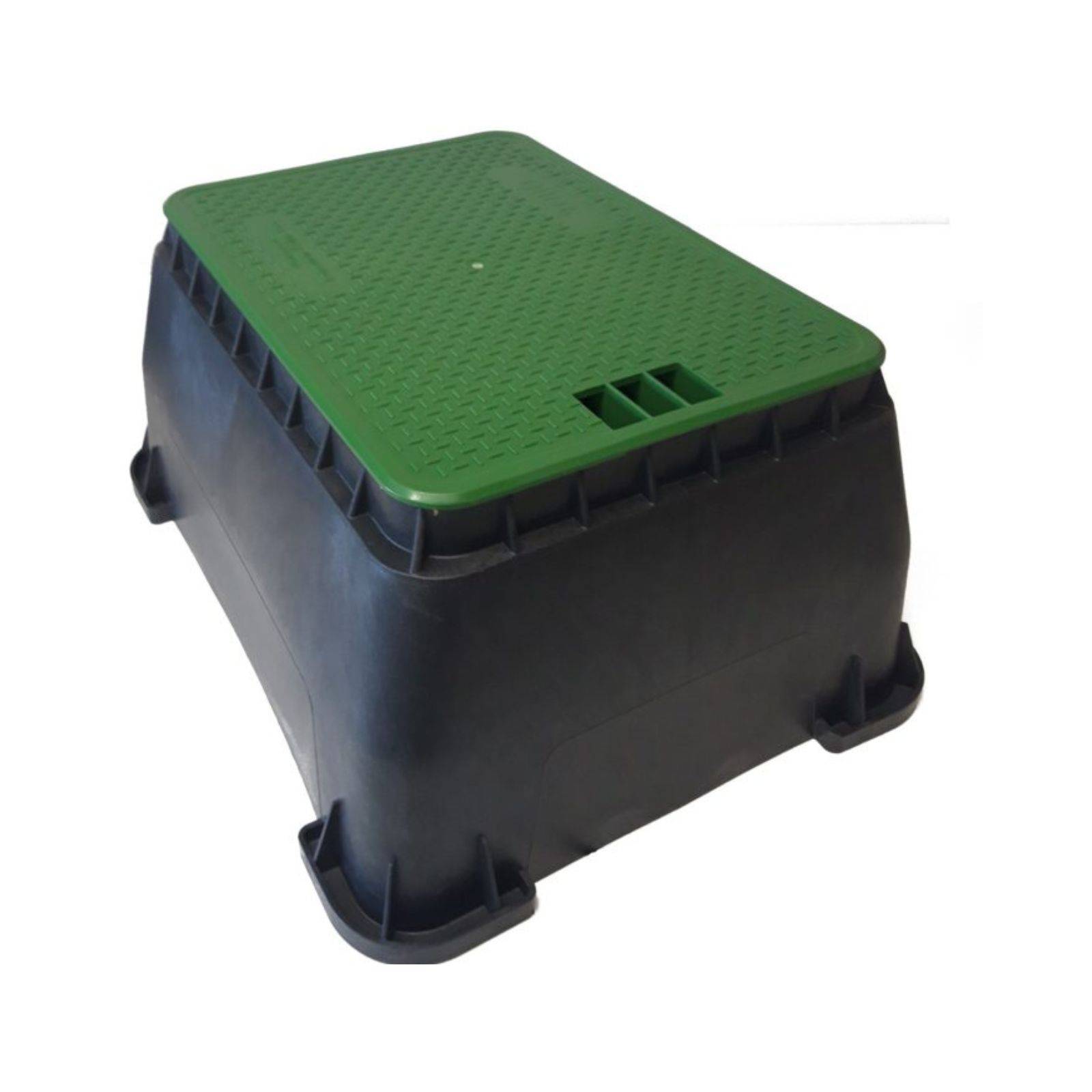Skrzynka zaworowa prostokątna jumbo Toro na 6 elektrozaworów. Posiada śrubę która chroni przed przypadkowym otwarciem. Wykonana z tworzywa sztucznego. Gwarantuje szybki dostęp do zaworów i innych urządzeń. Studzienkę zaleca się montować w miejscu dostępnym i sprzyjającym prowadzenie późniejszych prac konserwatorskich oraz nie zakłócającym estetyki. Skrzynka posiada gotowe otwory doprowadzające rury do elektrozaworów.