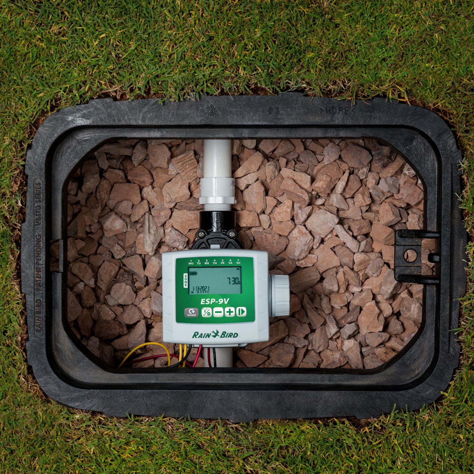 ESP-9V posiada również wejście czujnika deszczu, które umożliwia podłączenie czujnika przewodowego Rain Bird lub innego modelu typu „normally closed”. Po wykryciu opadów czujnik automatycznie wstrzymuje cykl podlewania, a sterownik wznowi jego działanie, gdy czujnik wyschnie. Dzięki temu system reaguje na pogodę w czasie rzeczywistym i ogranicza zużycie wody.