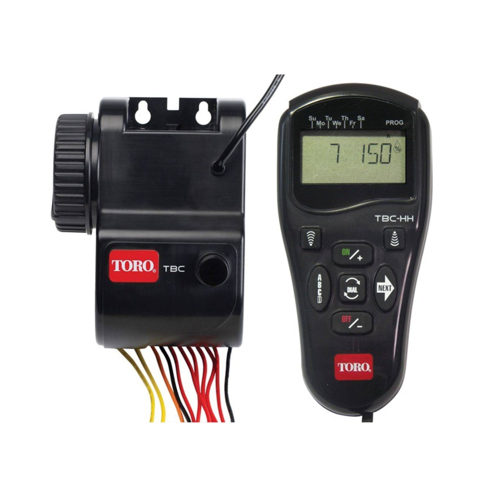 Wodoszczelny sterownik Toro zasilany z baterii. Odporny, nadaje się do miejsc pozbawionych standardowego zasilania. Zaawansowane funkcje sterownika TBCWP są łatwe do uruchomienia przy użyciu ręcznego programatora.