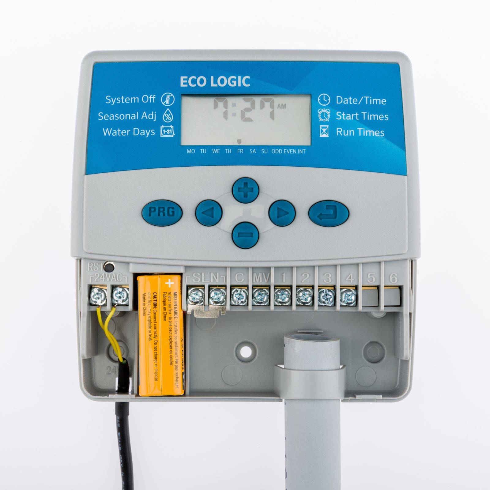 Sterownik Eco Logic wyposażono w czytelny wyświetlacz LCD i zestaw przycisków funkcyjnych, które umożliwiają szybkie programowanie harmonogramu podlewania.