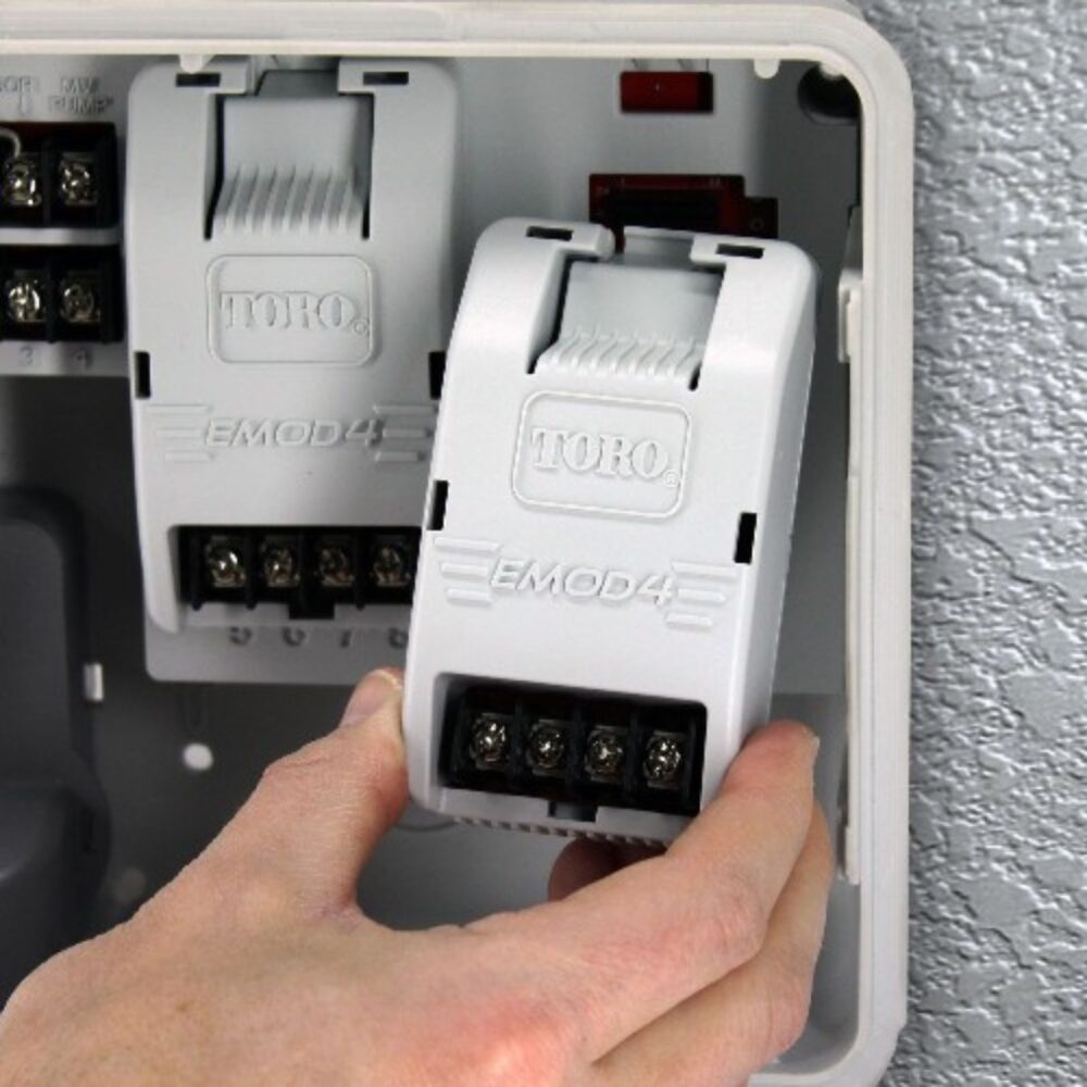 - Opcjonalny Smart Connector™ łączy się z programatorem czasowym, co pozwala na bezprzewodową komunikację z dużą liczbą urządzeń dodatkowych, w tym z czujnikami pogody, pilotami zdalnego sterowania oraz czujnikami wilgotności gleby (maks. 3).