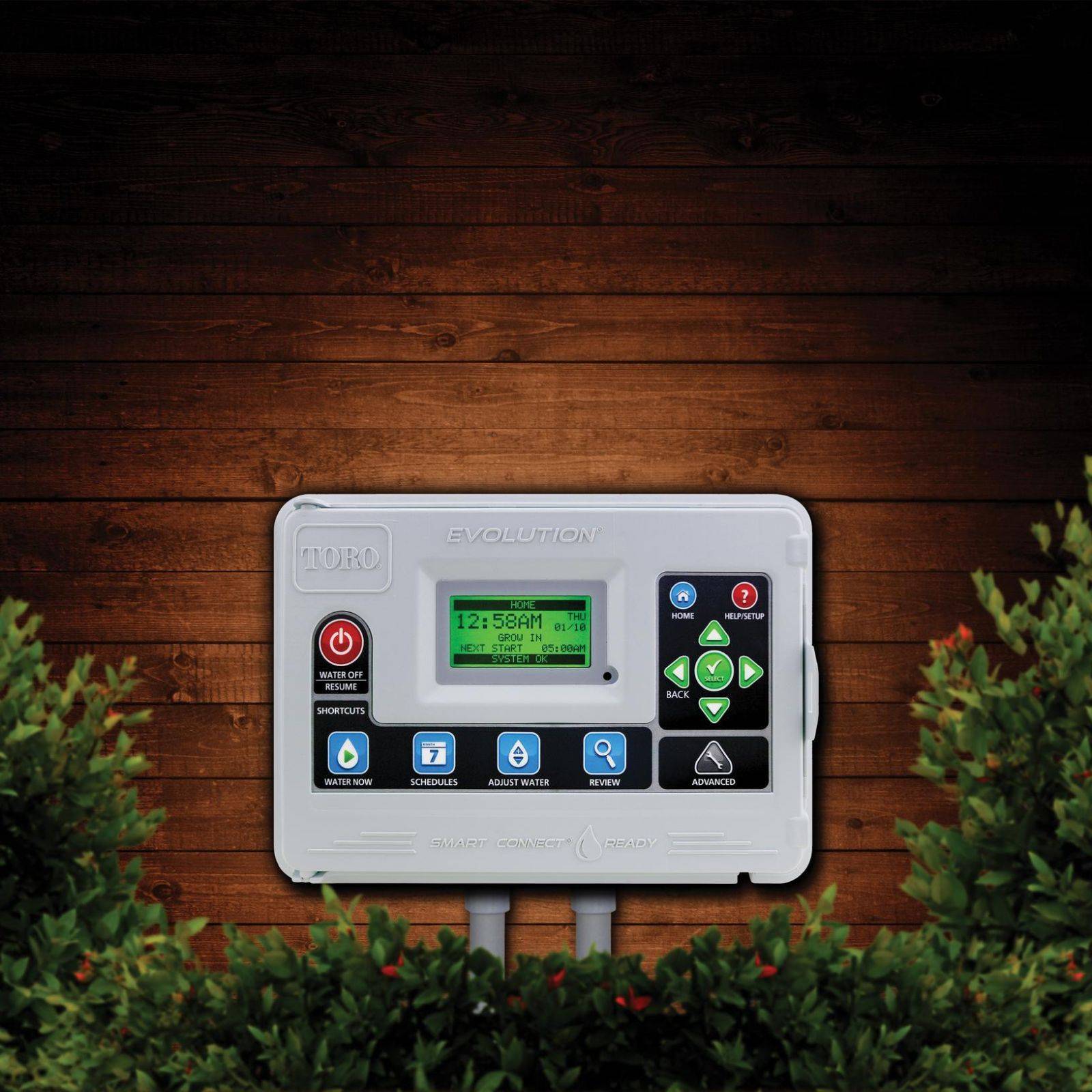 - Interfejs użytkownika sterownika Evolution™ został zaprojektowany z myślą o wygodzie klientów. Przyciski skrótów zapewniają szybki dostęp do standardowych funkcji, a zaawansowane menu pozwala profesjonalistom w zakresie nawadniania w pełni wykorzystać posiadaną wiedzę i doświadczenie; wszystkie dane są prezentowane na wyświetlaczu graficznym, który obsługuje się podobnie do wielu nowoczesnych osobistych urządzeń elektronicznych.