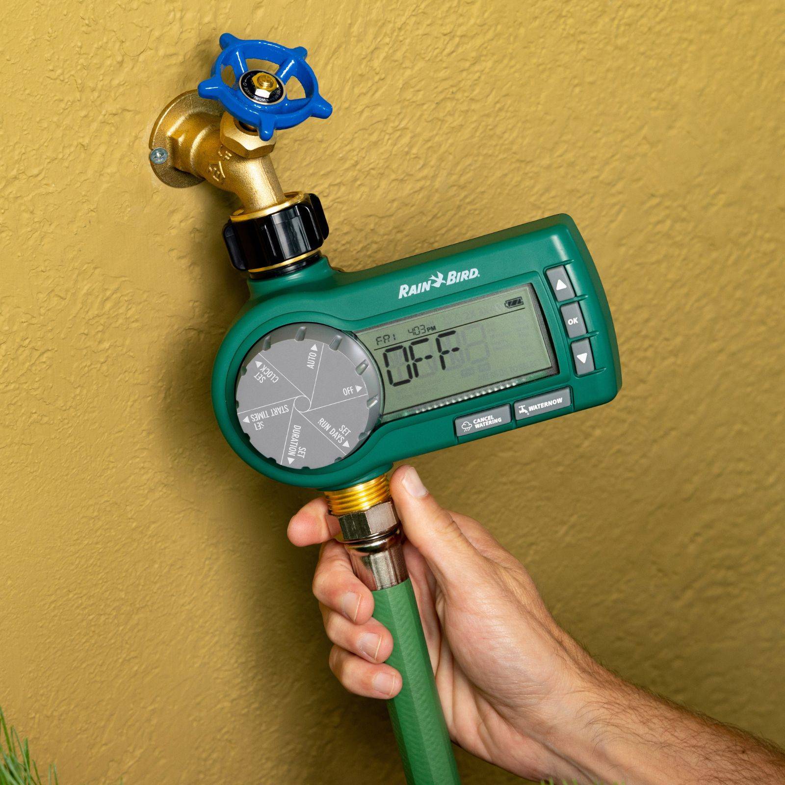 1. Przykręć sterownik bezpośrednio do kranu ogrodowego (gwint ¾”).