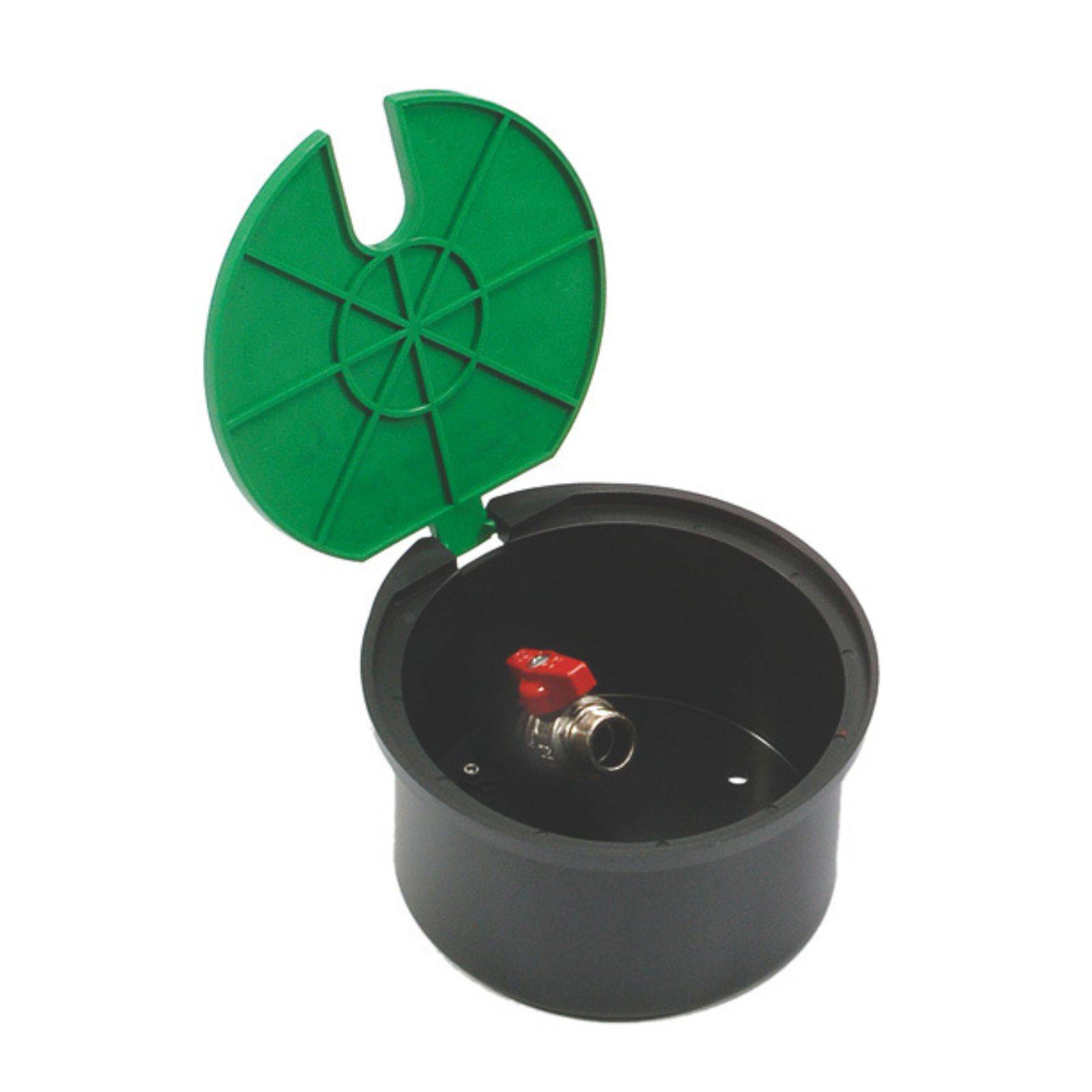 Okrągła studzienka poboru wody z wbudowanym zaworem 3/4″, przeznaczona do montażu w gruncie jako wygodny punkt podłączenia węża. Ma solidną obudowę z polipropylenu i praktyczną pokrywę, dlatego ułatwia dostęp do zaworu i pomaga utrzymać porządek w ogrodzie.