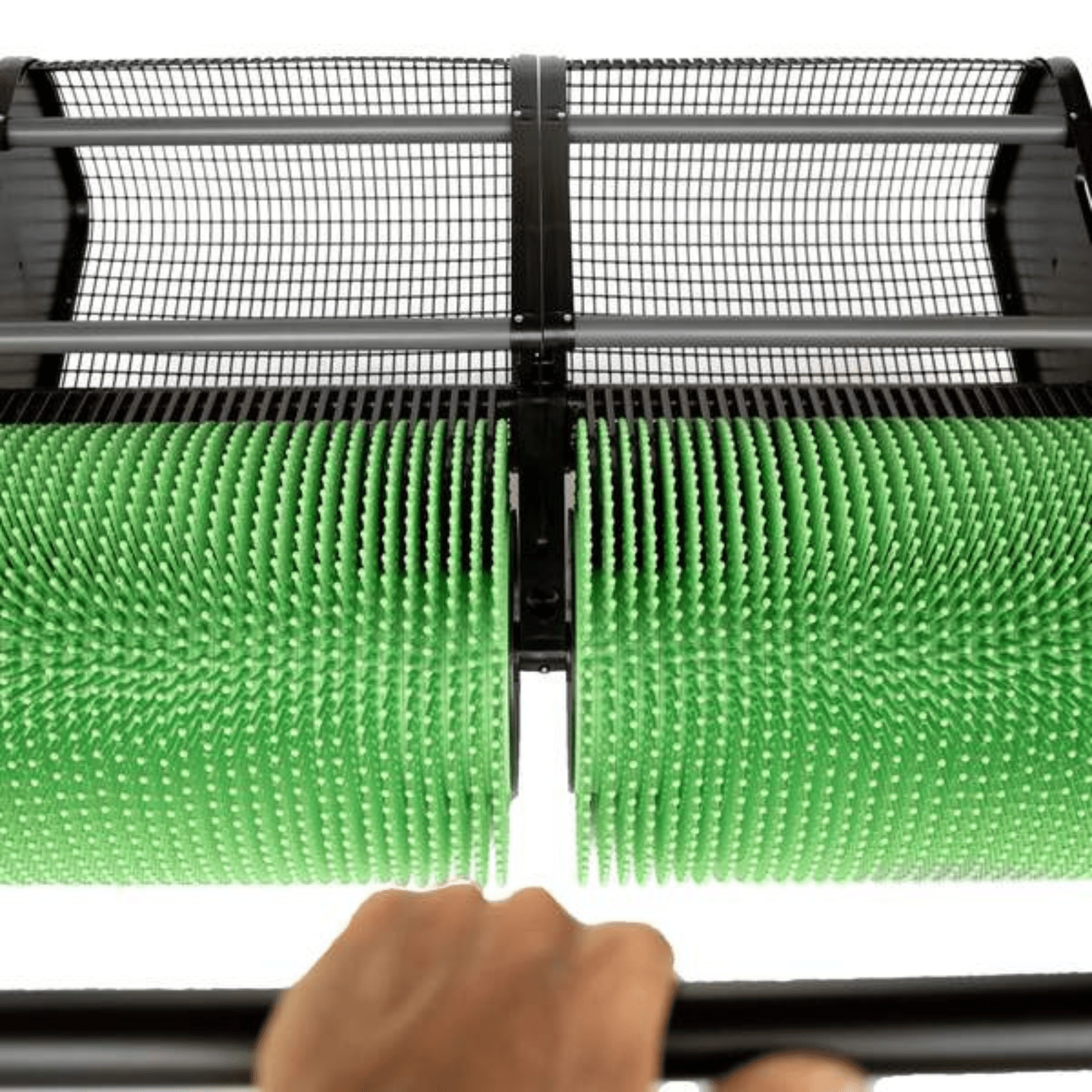 Mechanizm działania opiera się na obrotowych rolkach, które podczas przesuwania urządzenia po trawniku unoszą wykorki i kierują je do zamontowanego pojemnika. Dzięki swojej konstrukcji zbieracz dokładnie oczyszcza powierzchnię bez ryzyka uszkodzenia murawy.